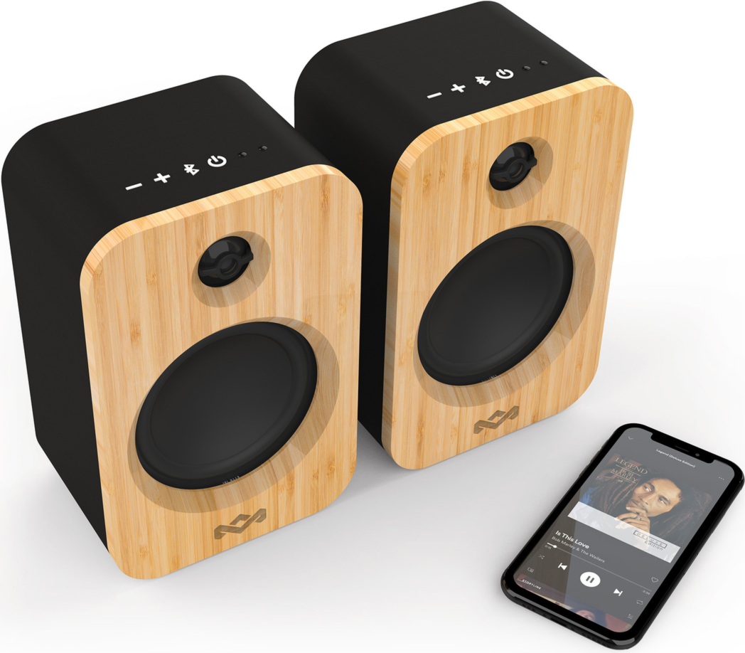 The Get Together Duo Speakers are crafted from Bamboo and REWIND™ Fabric. Embrace your natural style with Marley’s message of craftsmanship and sustainability.