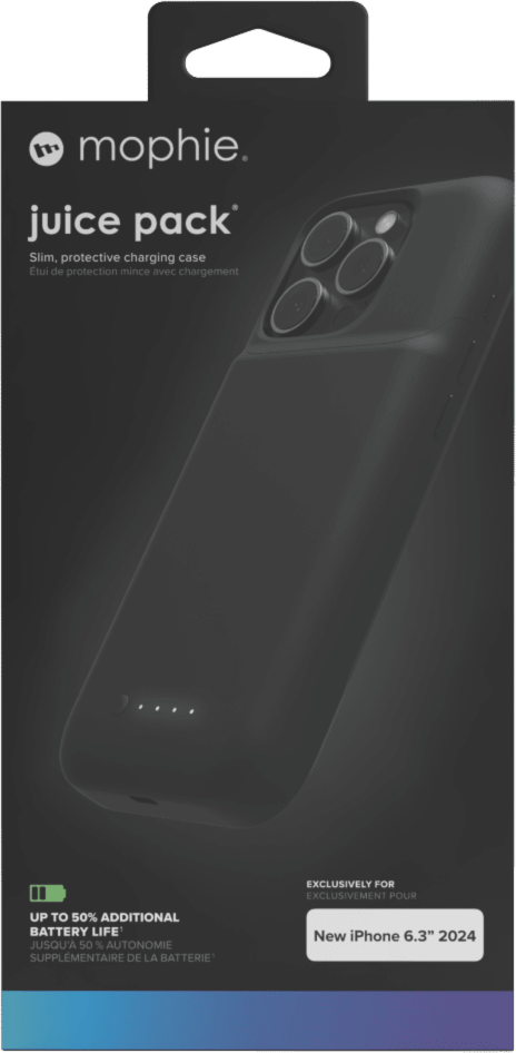 The Mophie Juice Pack is a protective case that contains an internal 2,400mAh battery, and it provides up to 6 feet of drop protection. Talk, listen to music, and view content without worrying about running out of battery. Just press and hold the button to send power directly to device.