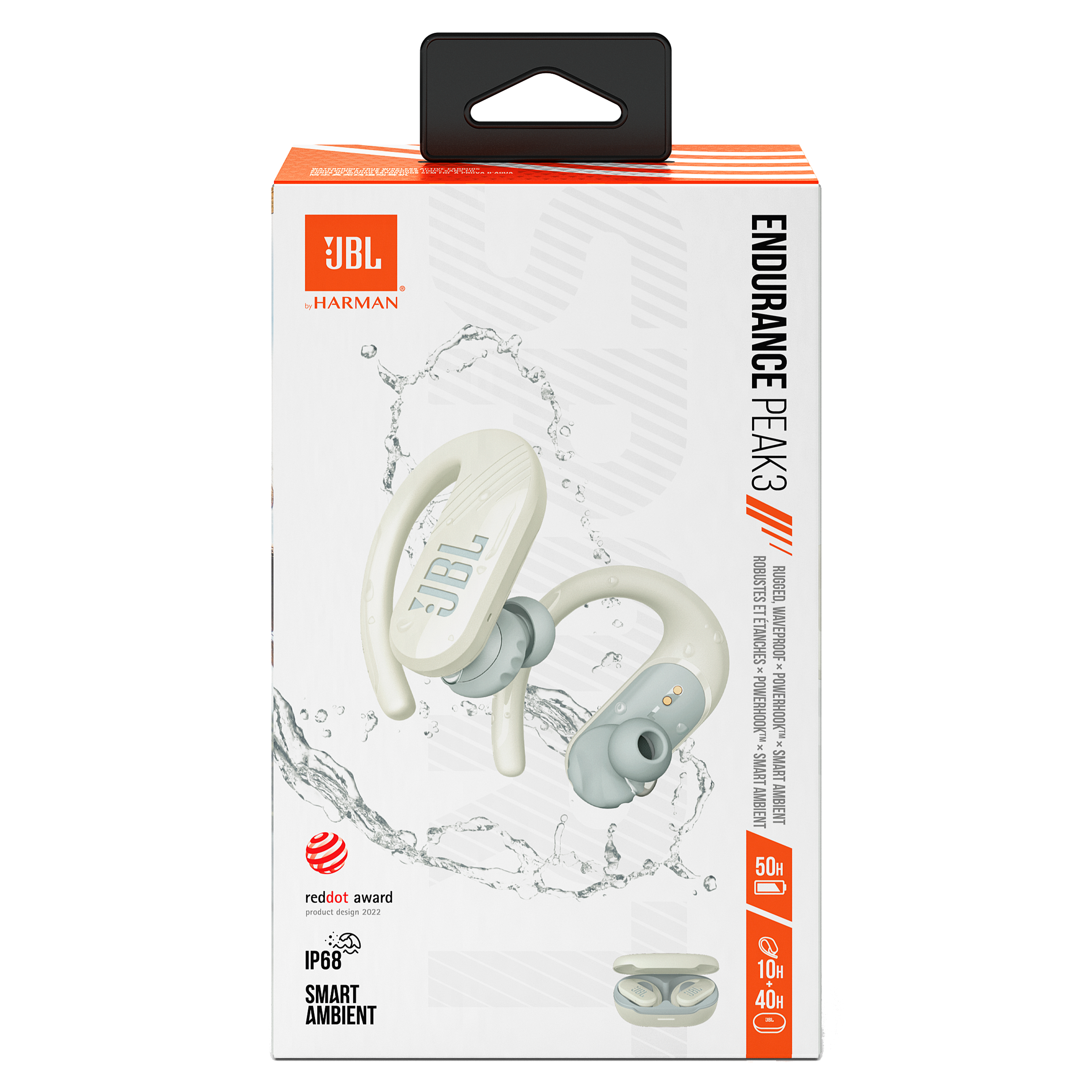 Your lifestyle is active—you need wireless earbuds that can keep up. The Endurance Peak 3 is the perfect training partner, pumping your motivational playlists to you with up to 50 hours of playback and rich JBL Pure Bass Sound you can feel in your muscles. The durable IP68 dust and water proof design can handle the dustiest mountain trail and the sweatiest gym session, while the bendable Powerhook™ together with the TwistLock™ ear hook enhancer ensures a secure, comfortable fit that stays in no matter how you move your body. And with the ability to make crystal clear calls from anywhere and stay aware of your surroundings, you'll stay connected to the world no matter where your workout takes you.