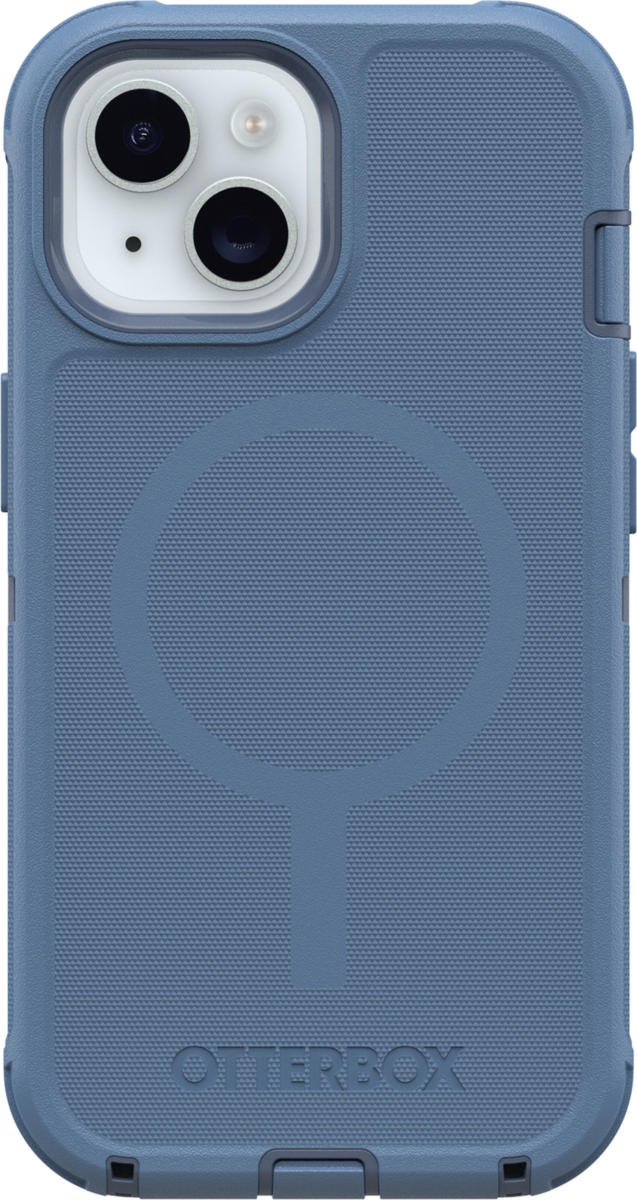 For peak protection, trust the OtterBox Defender Series Pro with MagSafe. It features a tri-layer design with a silicone outer cover, rigid inner shell and memory foam backing that work together to deflect whatever damage might happen — and deliver 7X military standard drop defence. Plus, it features shock-absorbing corners, all-over texturing for greater grip, integrated MagSafe magnets and built-in anchors for connecting phone straps.