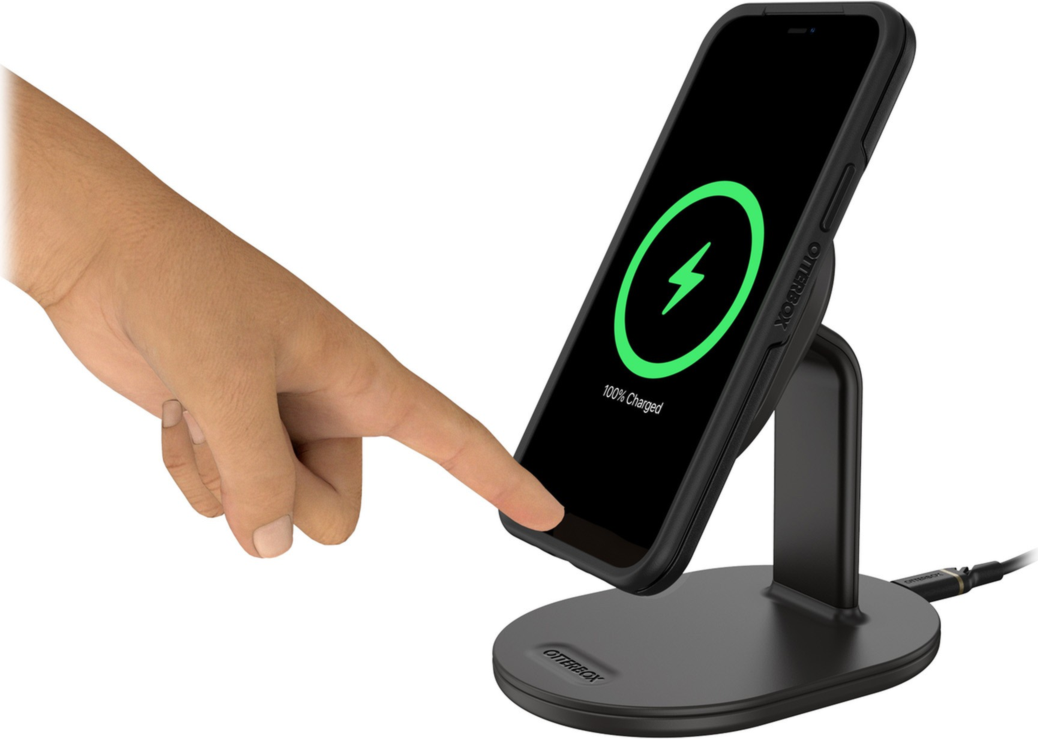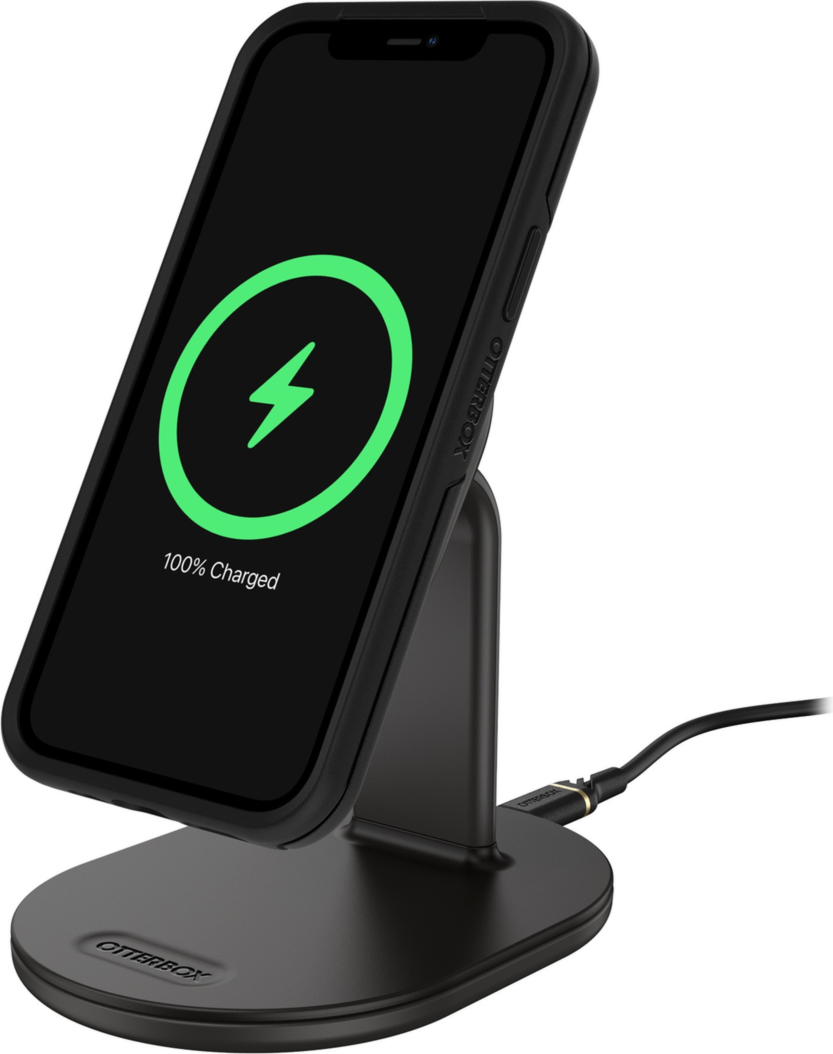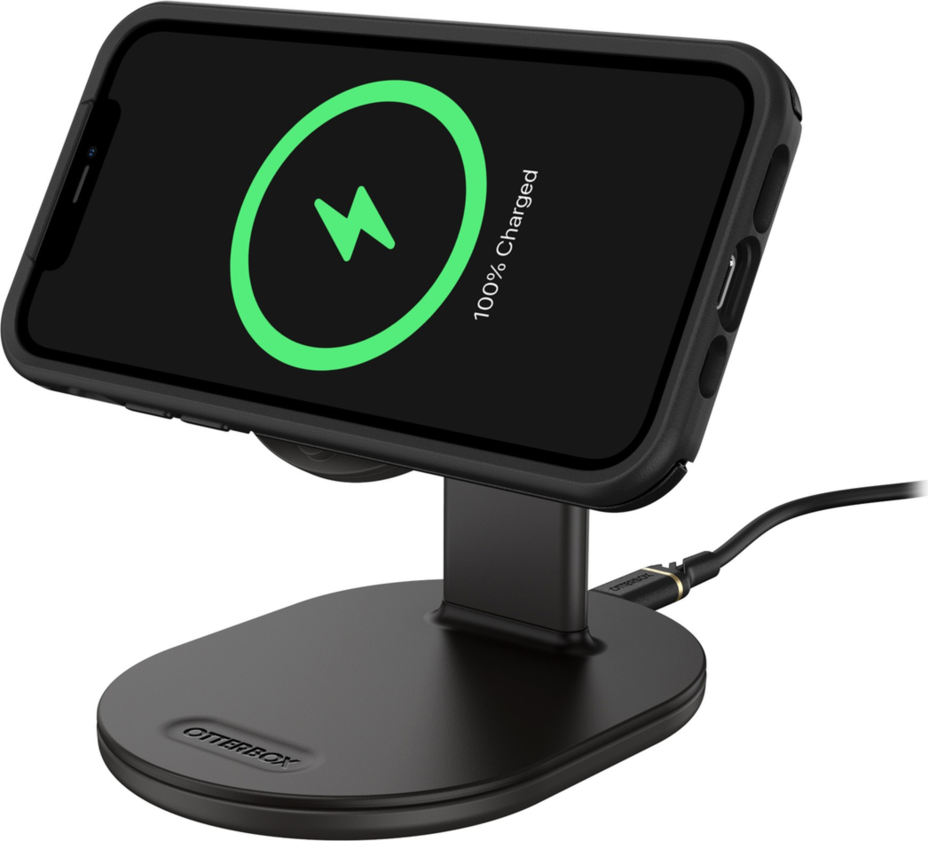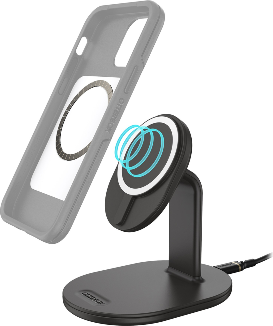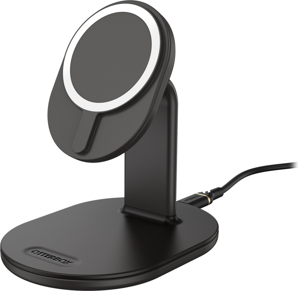 Sleek and compact, the OtterBox 15W MagSafe Wireless Charging Stand is ideal for charging your device at home and in the office. Featuring a raised magnet pad, attach your iPhone to the premium wireless charging stand and always know where it is. Set the stand in a handy place to monitor notifications.