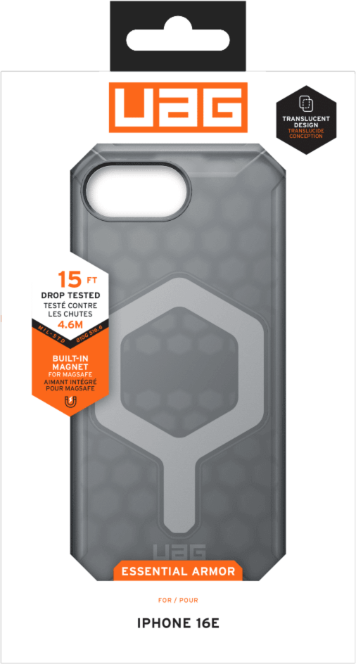 The Essential Armor Series with MagSafe accessory compatibility case is light in your hand, and heavy on protection. Essential Armor is built for the minimalist, who wants maximum protection. It covers your phone with an ultra-thin ergonomic design with reinforced corner protection, an outer debossed lattice pattern, and an unmistakable UAG aesthetic. Completing this package is a built-in magnet module for MagSafe charging compatibility so that you can stay charged on the go. Everything about Essential Armor is exactly that—ESSENTIAL.
