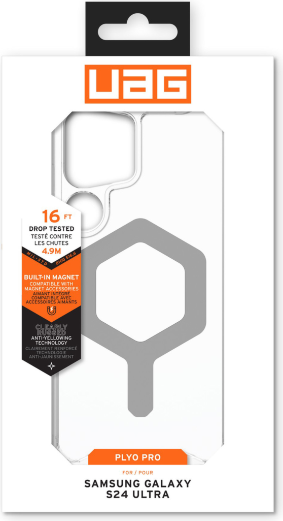 UAG Plyo Pro case series features lightweight construction in a shock-absorbing frame and a PC backplate. Dependable UAG armor shell and impact resistant soft core. Scratch resistant skid pads and air-soft corners for cushioning impact. The strong built-in magnetic module is compatible with most 3rd party magnetic chargers. Premium heavy duty protection with a striking design.